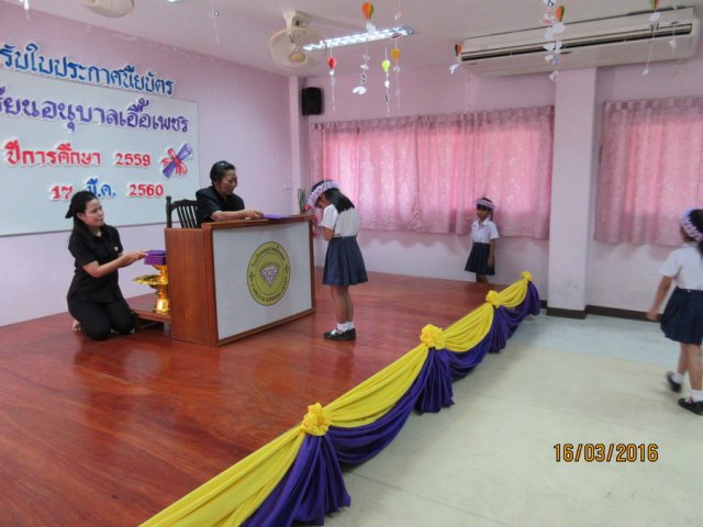 เมื่อวันที่ 17 มีนาคม 2560 โรงเรียนอนุบาลเอื้อเพชร ได้จัดพิธีมอบประกาศนียบัตรแก่นักเรียนที่สำเร็จการศึกษา ระดับชั้นอนุบาล 3 ปีการศึกษา 2559 จำนวน 61 คน โดยโรงเรียนได้จัดให้มีการแสดงบนเวทีของนักเรียนรวม 2 ชุดดังต่อไปนี้